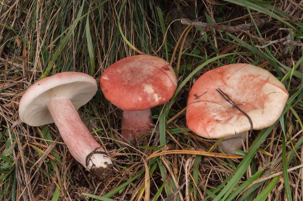Russula sanguinea: Bei Pinus sylvestris.