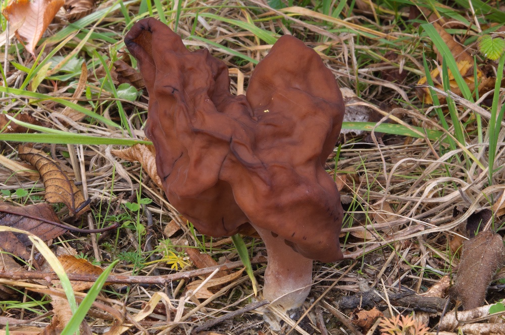 Gyromitra infula: Auf Erde am Wegrand, bei Holzresten von Pinus sylvestris. .