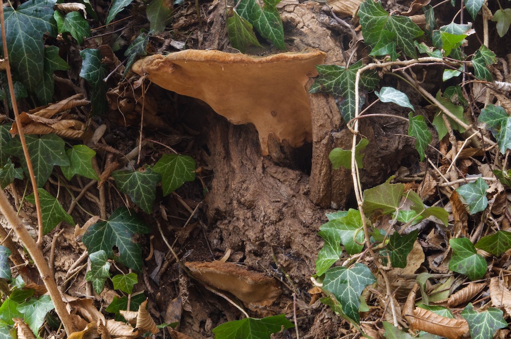 Hapalopilus eupatorii: Auf Hedera helix (oben) und dickem, liegendem Krautstängel (unten).