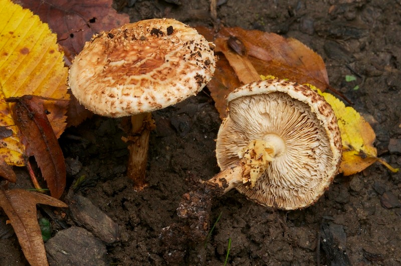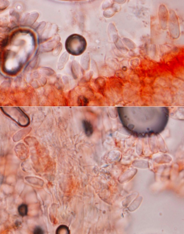 am Samstag hab ich zwei Stachelschirmlinge mitgenommen, einer davon ist noch unbestimmt und wird gleich extra präsentiert. Die andere Kollektion, die hier gezeigte, konnte ich auch erst nach der mikroskopischen Untersuchung genauer einordnen – als Lepiota aspera. Die Lamellen waren am Hutrand teilweise (aber eher selten) gegabelt, der Ring ist groß und häutig. Mikroskopisch passt es ebenfalls: länglich-spindelige, dextrinoide Sporen (ca. 7–9 x 3–4 µm), Schnallen, sterile Lamellenschneiden mit Cheilozystiden. Der Hutdurchmesser betrug allerdings nur ca. 4 cm… Eine andere Möglichkeit hab ich wohl nicht übersehen, oder? Standort war ein Laubmischwald unter Carpinus, Corylus etc. über Kalk.