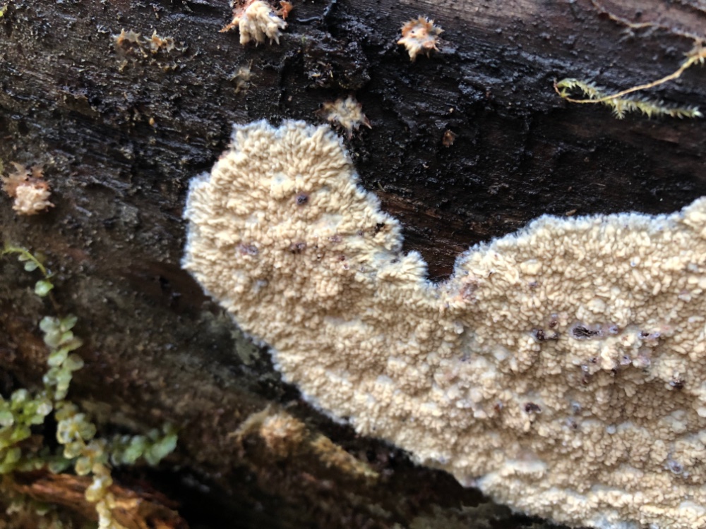 Coniophora olivacea: Aufgrund des scharf begrenzten, sich tendenziell sogar ablösenden Rands sieht mir das nicht nach C. olivacea aus. Makroskopisch hätte ich bei Veluticeps ambigua geschaut, kannst du die Mikromerkmale damit vielleicht nochmals vergleichen?
