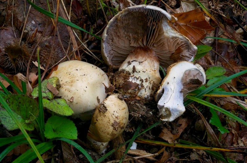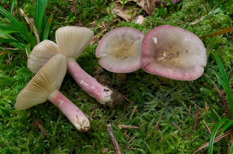 Russula ochroleuca (links) und Russula fellea (rechts)