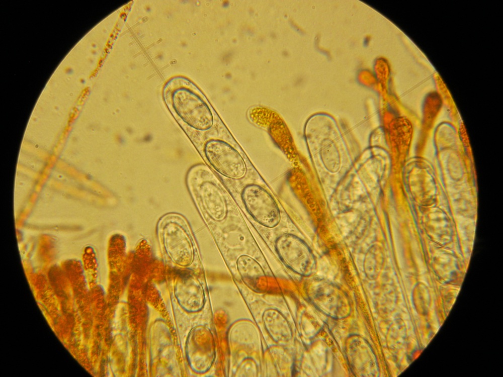 Die Haare sind bei deinem Pilz sicher sehr kurz und stumpf, es handelt sich dabei nämlich um eine Melastiza. Vermutlich war diese noch nicht ganz reif, weshalb du das Sporenornament nicht beobachten konntest. Dieses benötigt man jedoch für eine sichere Bestimmung (am besten in Baumwollblau betrachtet).christian-ap hat geschrieben: ↑03.06.2019, 23:31Aus irgendeinem Grund fand ich aber keine Borstenhaare an den Pilzen und die Ornamentierung der Sporen blieb unklar.