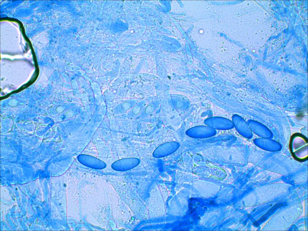 die Gyromitra sp. schaut von Farbe und Habitus aus wie G.geogenia, die Sporenbreite paßt auch, und wenn ich das Mikrofoto betrachte, kann ich beim Vergleich der Sporenlänge kaum auf einen Q > 3 glauben?!