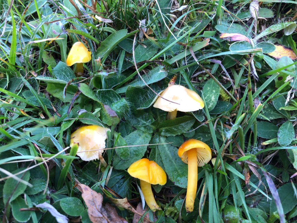 Hygrocybe chlorophana war, ebenso wie H. citrinovirens, C. virgineus und G. psittacinus, recht häufig anzutreffen