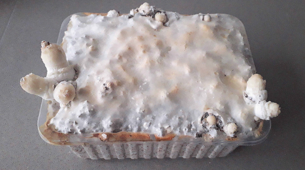 Temperatur ging das Myzelwachstum zurück und es haben sich Primordien gebildet.