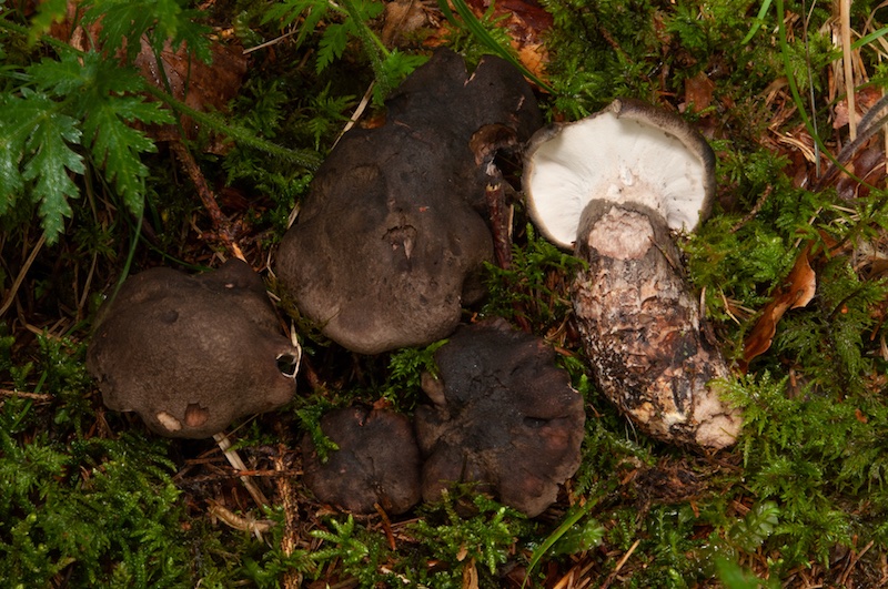 2. Bei Picea im Gebirge, auf kalkhaltigen Böden; Hut dunkelgrau bis schwarz; KOH schwarz auf allen Teilen des Fruchtkörpers
