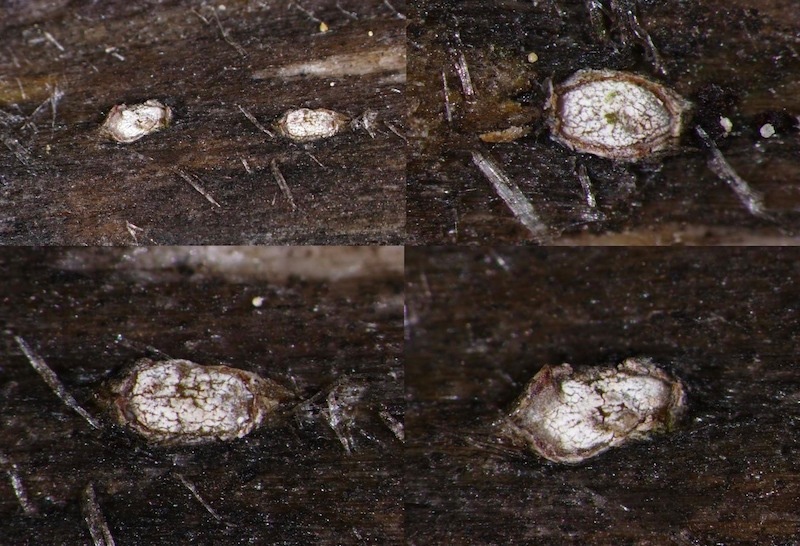(Kollektion auf Borke von lebender Fichte; die Fruchtkörper waren hier auffällig klein und rundlich.)