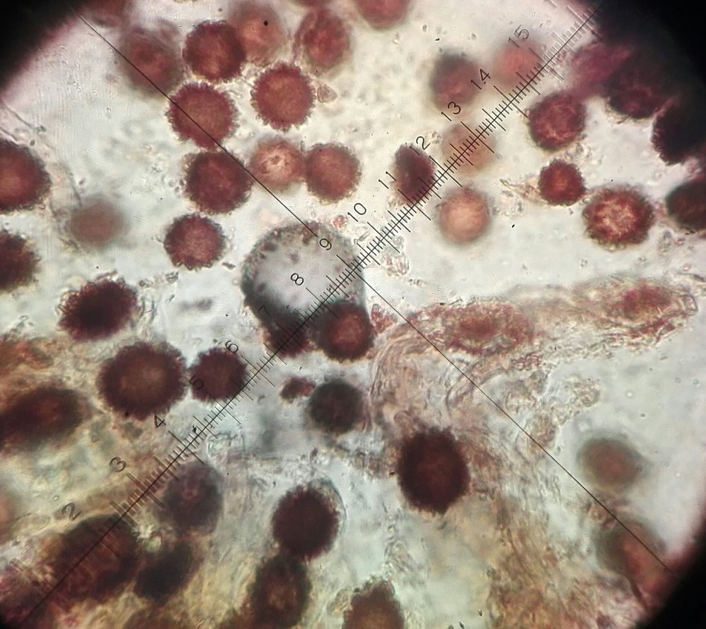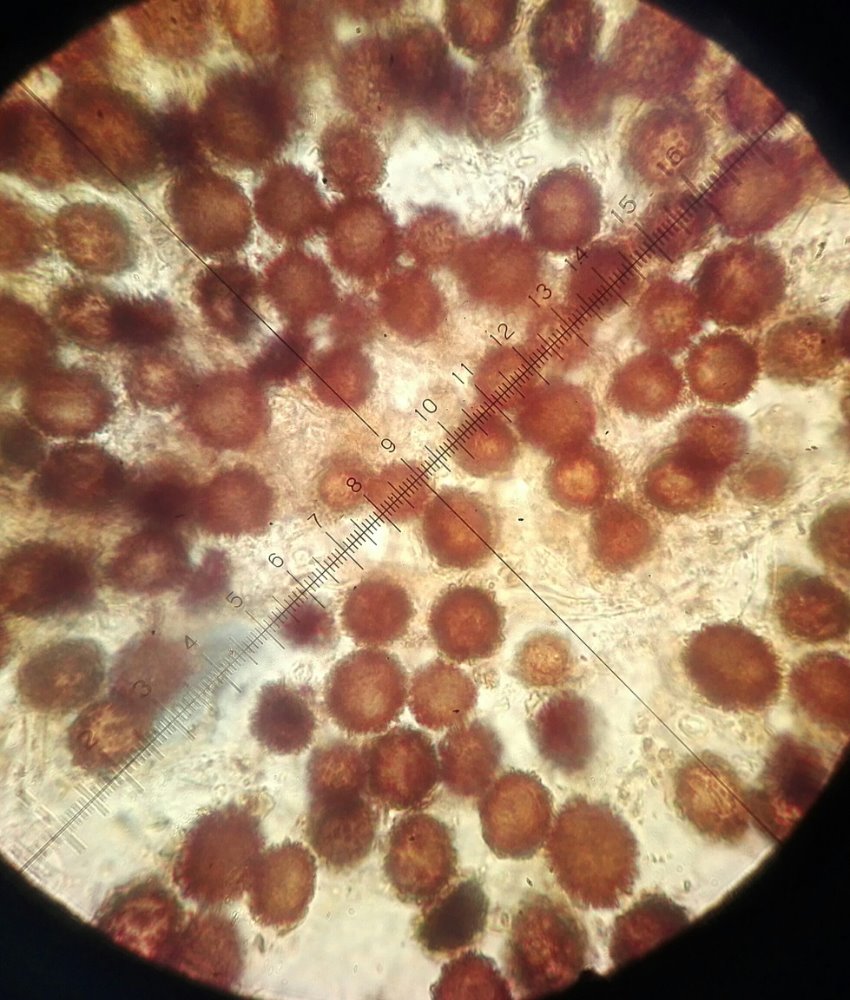 das Sporenornament scheint nicht netzig zu sein, von daher hätte ich keine Einwände gegen deine Bestimmung. Zum makroskopischen Vergleich hier noch ein Foto aus der Südoststeiermark (St. Anna am Aigen; Rand eines Maisackers, in der Nähe diverse Laub- und auch Nadelbäume).