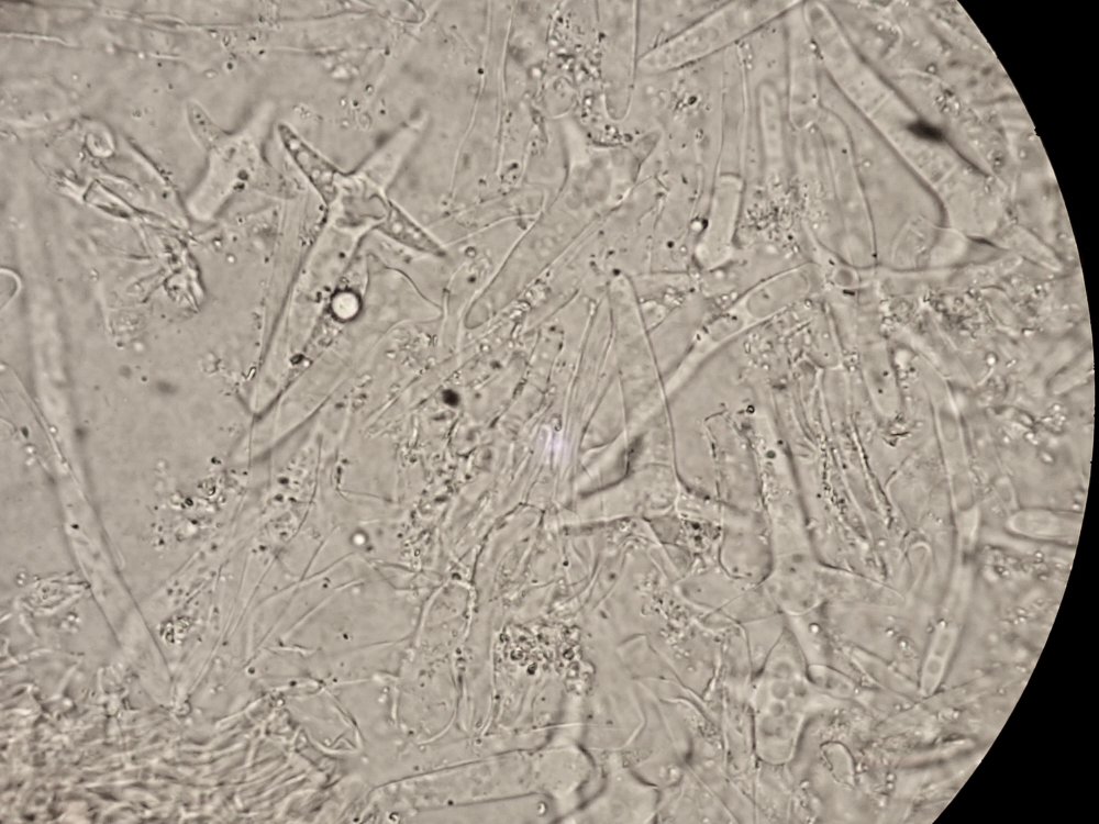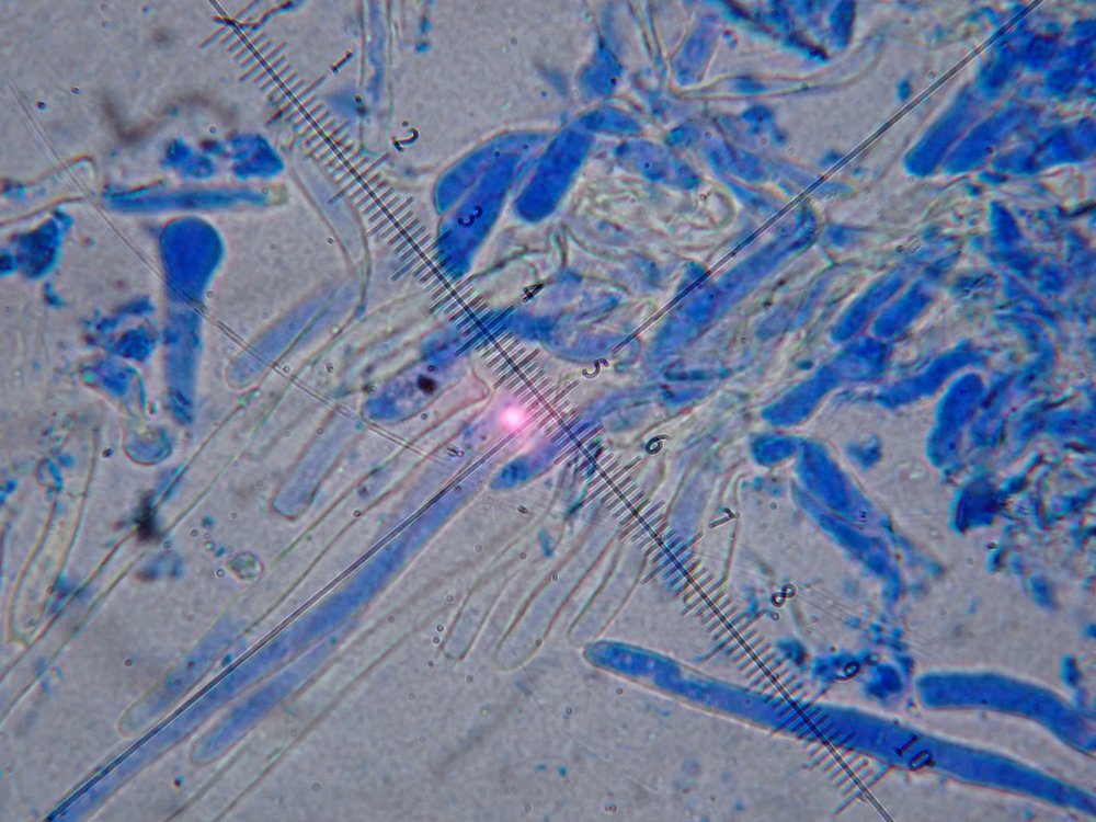 In der Datenbank ist zu sehen, dass du den Pilz schon zweimal kartiert hast. Darum die Frage an dich ob A. disciformis für plausibel hältst und was diese seltsamen torpedoartigen Elemente sein könnten (siehe Fotos).