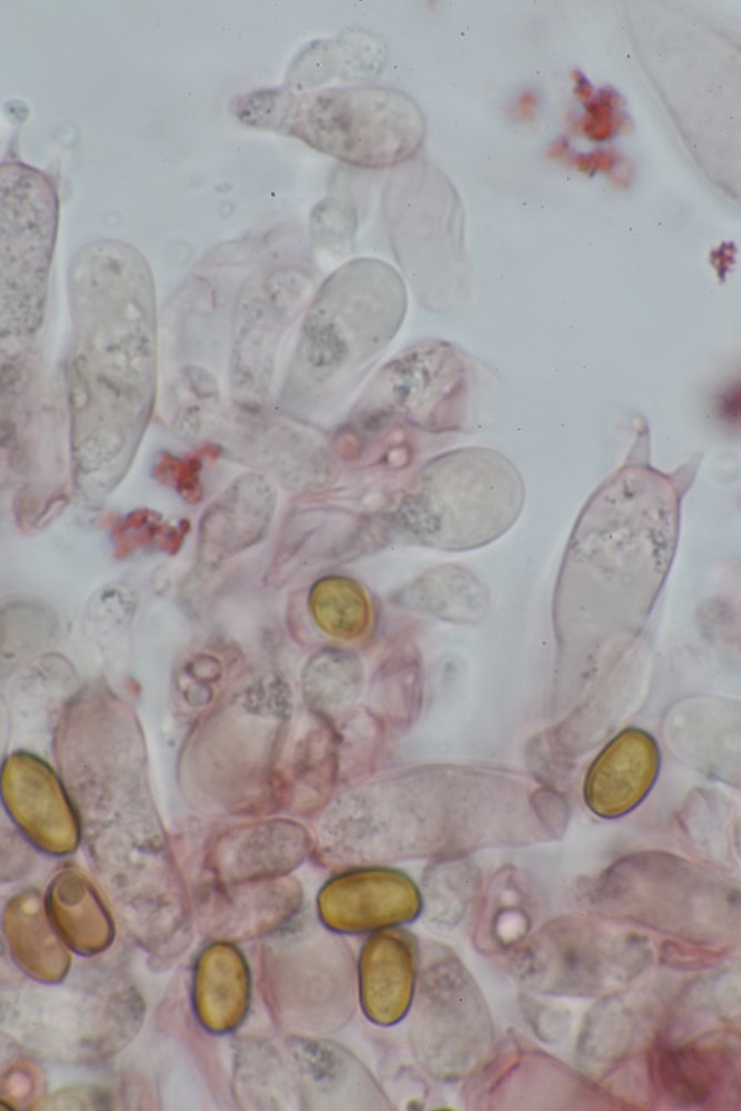 Ich habe allerdings trotz intensiver Suche keine Chrysozystiden gefunden, die Sp. sind eher etwas zu groß. Nachstehend ein paar Makro- und Mikrofotos. Vielleicht kann mir hier jemand weiter helfen.
