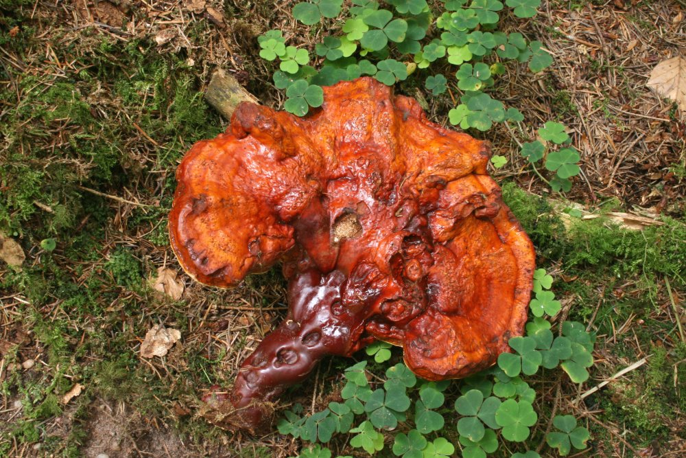 Am 10. August habe ich hier in der Gegend von Ulm einen großen "Glänzenden" Lackporling auf einem optimal-morschen Douglasienstumpf gefunden. Erstaunt über das Substrat sendete ich Lothar Krieglsteiner ein paar Fotos, der mich auf Ganoderma tsugae aufmerksam machte. Bei meinen Recherchen dazu stieß ich auf eine Veröffentlichung "von Euch": https://www.myk.univie.ac.at/wp-content ... _final.pdf, ab Seite 274 "Ganoderma valesiacum"