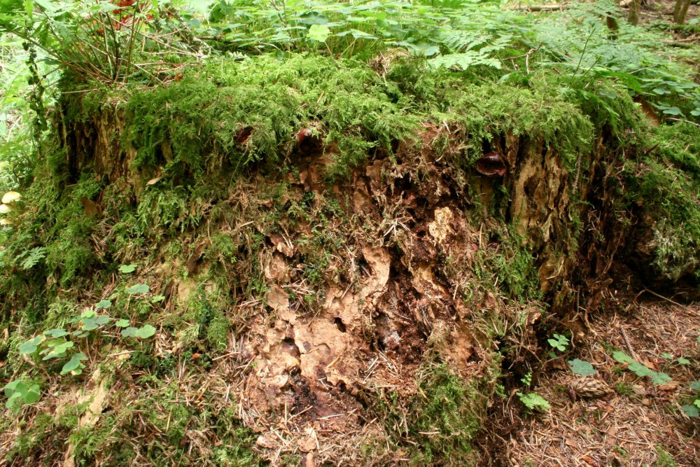 Das Substrat, optimal-morsche Douglasie, mit noch 4 weiteren ganz jungen "Knubbeln":