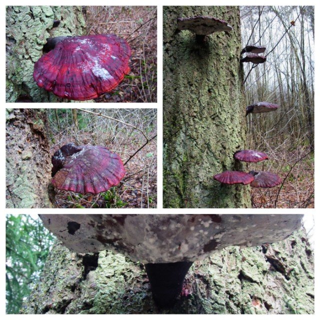 Auch Lothar hat einen von ihm als G. (cf.) tsugae abgelegten Ganoderma-Fund (der ihm zugetragen wurde) auf einer stehenden Douglasie aus der Nähe von Schwäbisch Gmünd im Archiv. Er hat ein Exsikkat davon (das heraus zu suchen allerdings Zeit in Anspruch nähme). Eine Collage vom Finder und ein Foto der Trama zu diesem Fund findet Ihr unten in diesem Beitrag, nach meinen Bildern.
