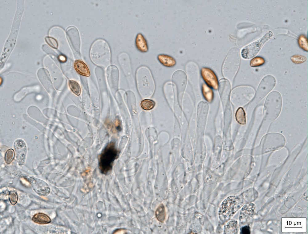 Gruppe Denudata (Tröpfchen an den L) war eindeutig und nach Mirkoskopie bin ich mit der Fungi Europaei 14 auf Hebeloma populinum gekommen – auffällig waren die sublimoniformen, großen, warzigen, dextrinoiden Spund v. a. die Cheilozystiden mit großen Köpfen, die teilweise spatelförmig ausgebildet sind. Meine Frage richtet sich an potenzielle Finder (IKG, CH, GF etc.), habt ihr das auch beobachtet bzw. ist bei Versterholt (FNE 3) eine H. vaccinum var. cephalotum angeführt, die ich nicht einschätzen kann. Auch H. ammophilum, die ich ebenfalls nicht kenne, gehört offensichtlich in diesen Dunstkreis.