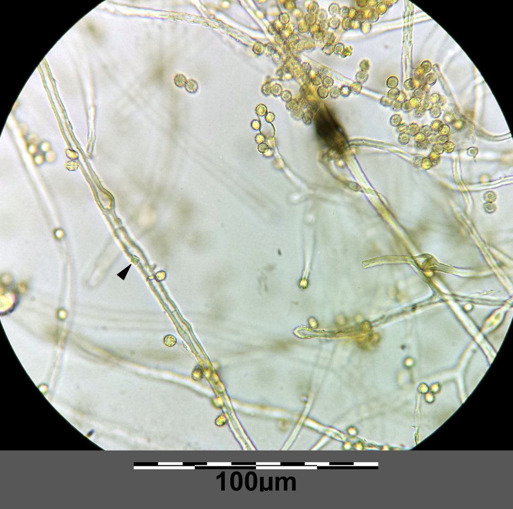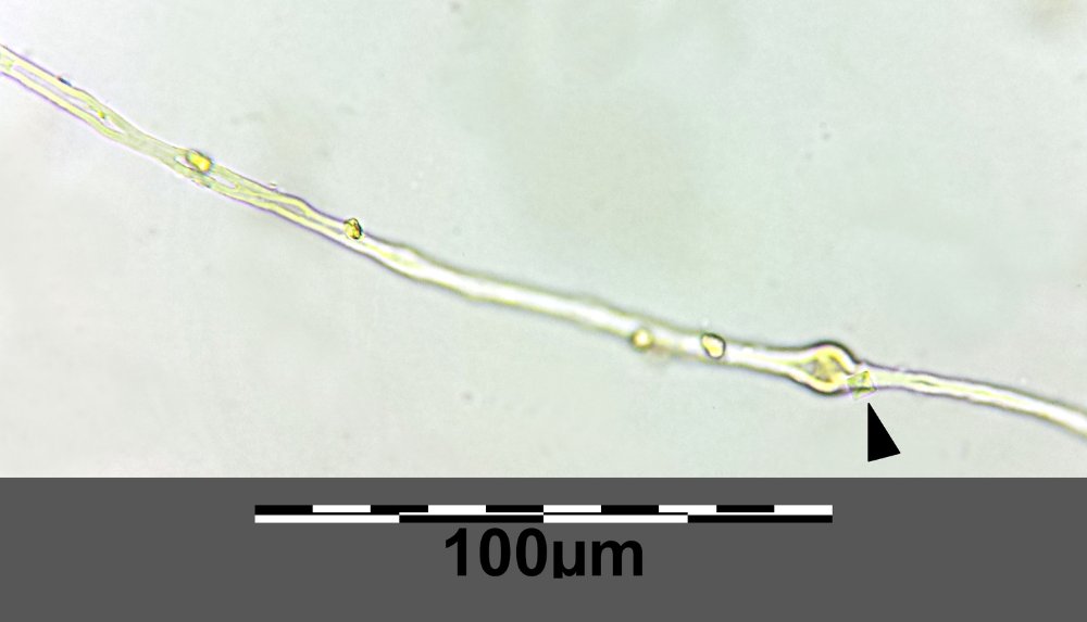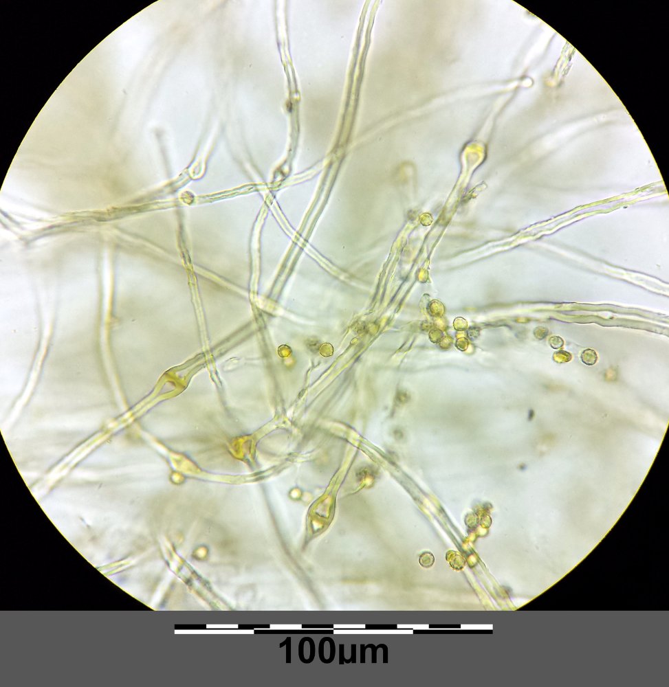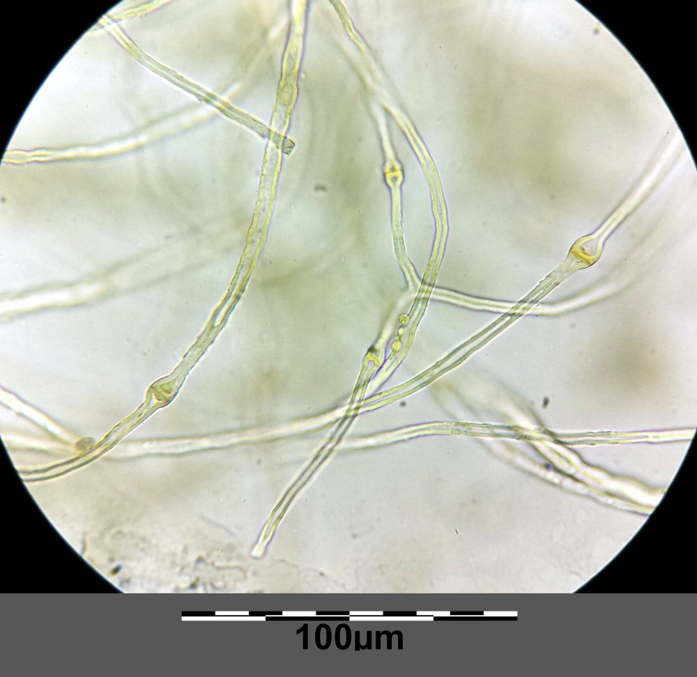 ganz genau - das sind die erweiterten Septen der Capillitiumfasern. Das würde passen (die Septen sollten 2 bis 3 x so breit sein wie die Fasern selbst. Du müsstest an den Fasern auch Kristalle finden können. Und die Sporen sollten so um die 4-5,5 x 4-5 µm klein sein.
