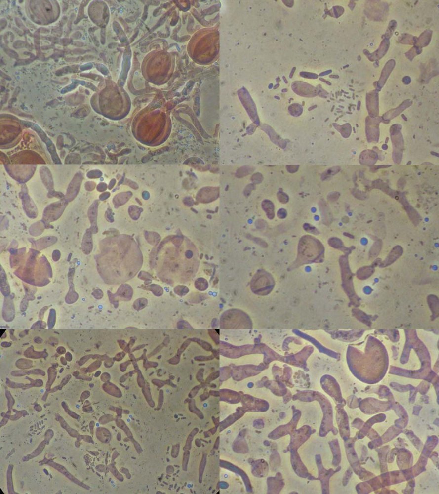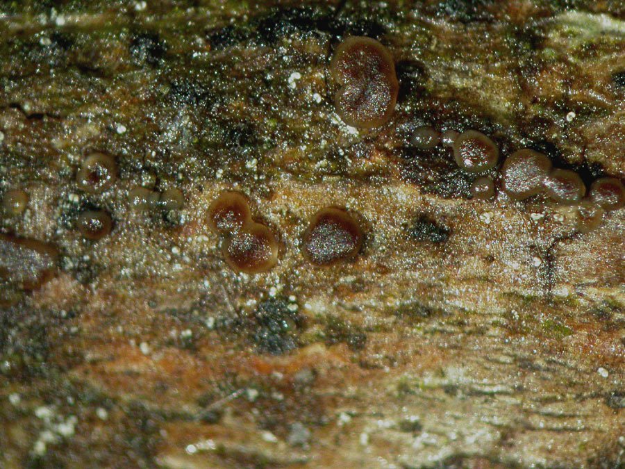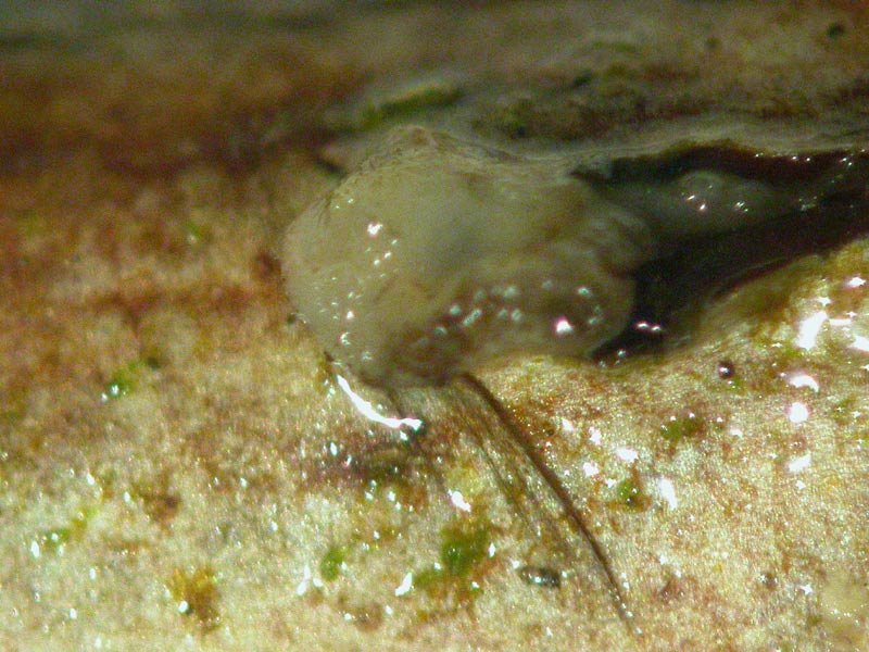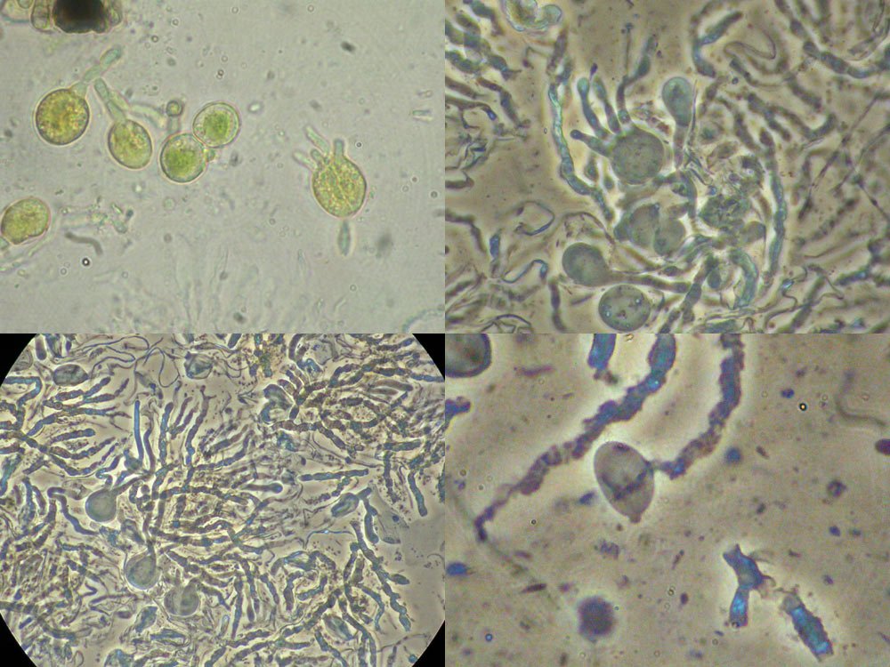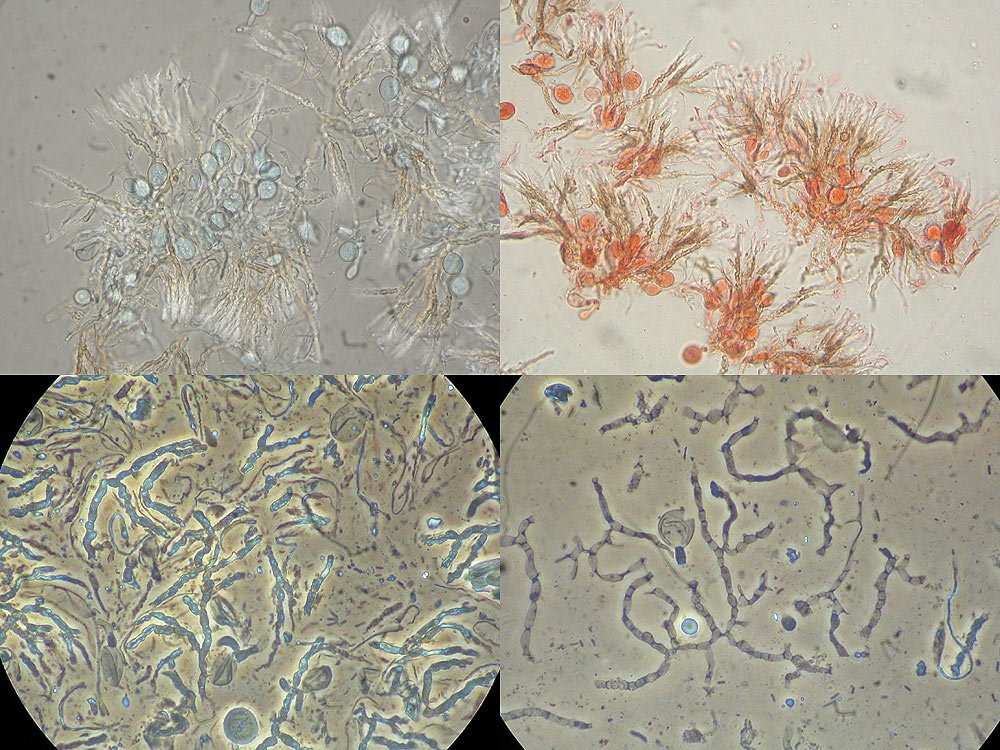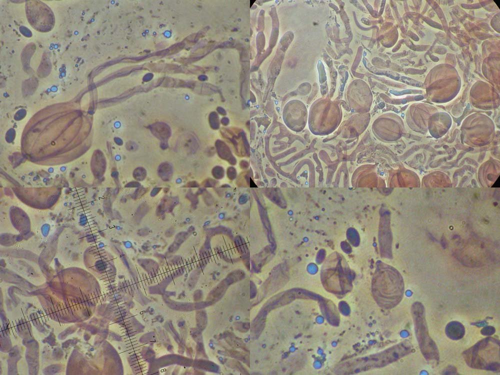 Mikroskopisch auffallend waren hier gelbe bis gelbbraune inkrustierte "Hyphidien". Habe dabei ähnliche Mikrokonidien wie bei meiner vermeintlichen