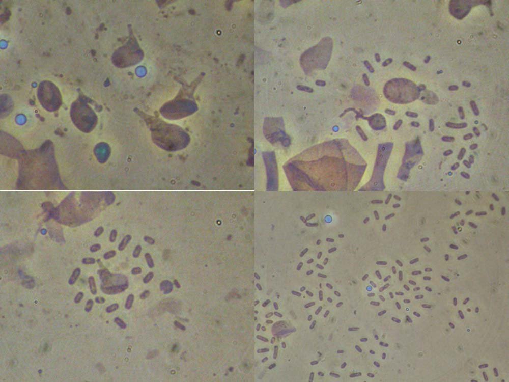 Haselstrauchästchen, eine Tremella mesenterica im Hefestadium und eine Tremella indecorata im perfekten und im Hefestadium gefunden. Das hat mich irritiert, weil ich nur mit einer Tremella Art gerechnet habe. Auf jeden Fall habe ich bei der vermeintlichen T. indecorata Mikrokonidien gefunden, die passen könnten.