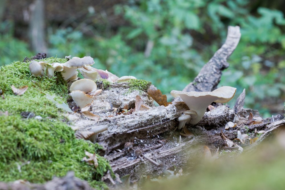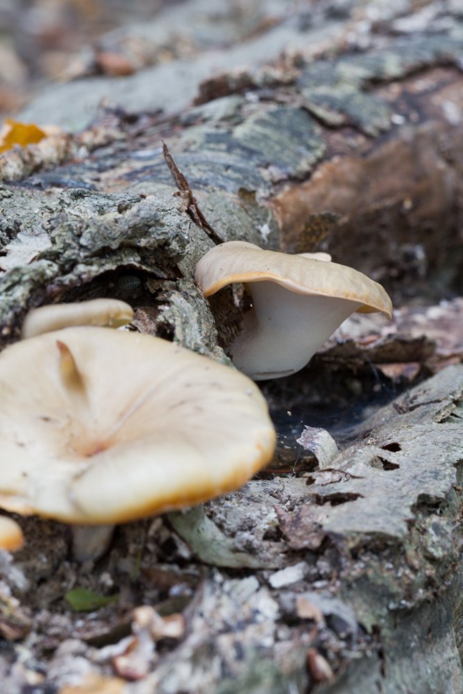 Auch die Seitlinge lassen sich schon blicken - neben den häufig vorkommenden Ossicaulis-Arten auch ein heller Pleurotus ostreatus (?) Korrektur Irmgard: Pleurotus pulmonarius: