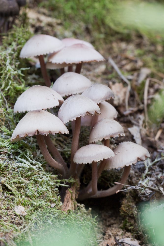 Immer eine Augenweide sind die kleinen Helmlinge - wie z. B. Mycena haematopus: