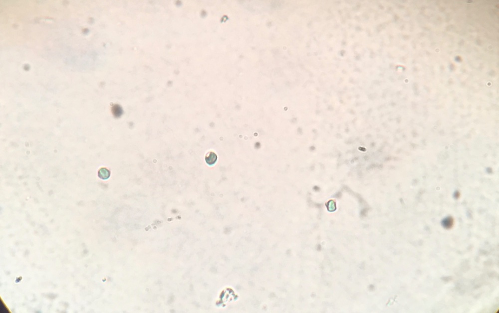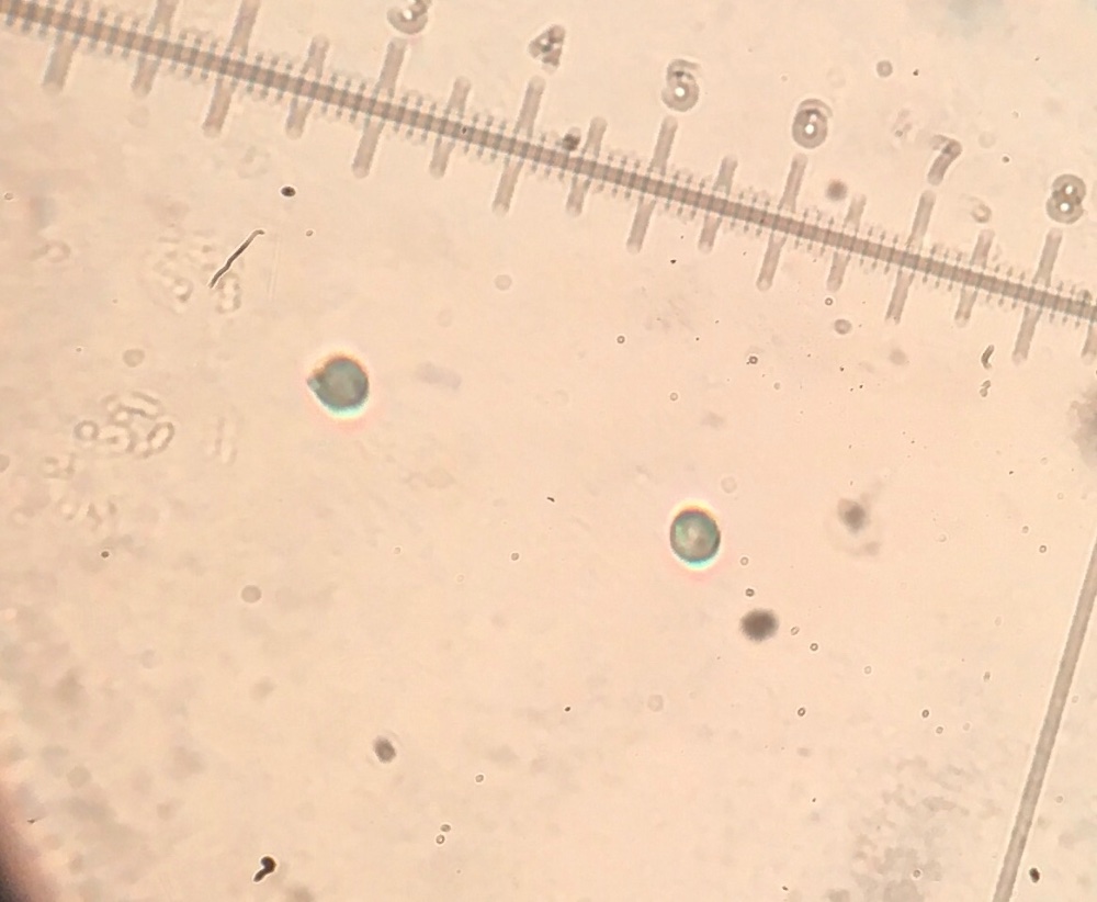 Ich schwanke zwischen Amaurodon mustialensis mit glatten Sporen, allerdings wären die bei mir zu klein, A. viridis - da passt die Sporenform, sollten aber ornamentiert sein und Sporengröße ungefähr und A. wakefieldiae - da passt die Sporengröße, ist aber in Deutschland noch nicht nachgewiesen.