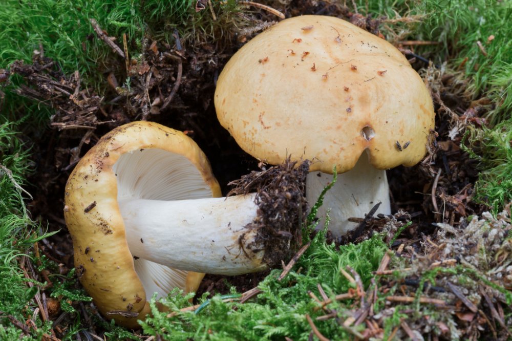 mit schleimiger Kappe und chromgelber Basis: Gomphidius glutinosus:
