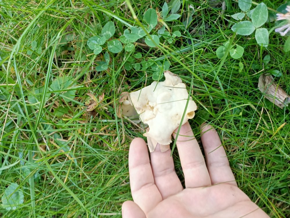 mit der Herbst-Lorchel (Helvella crispa) liegst du sicher nicht verkehrt, wobei die Abgrenzung von H. lactea schwierig ist.