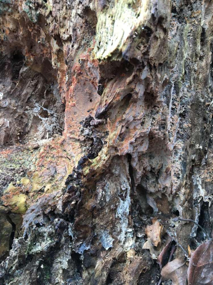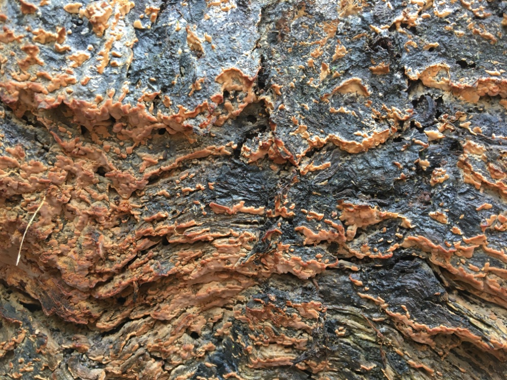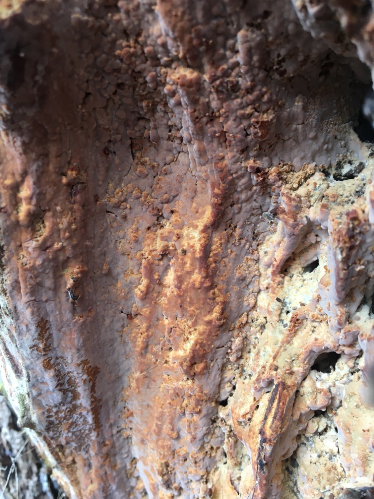 Der Pilz wuchs relativ großflächig über den halben Stumpf und ist auch relativ dick.