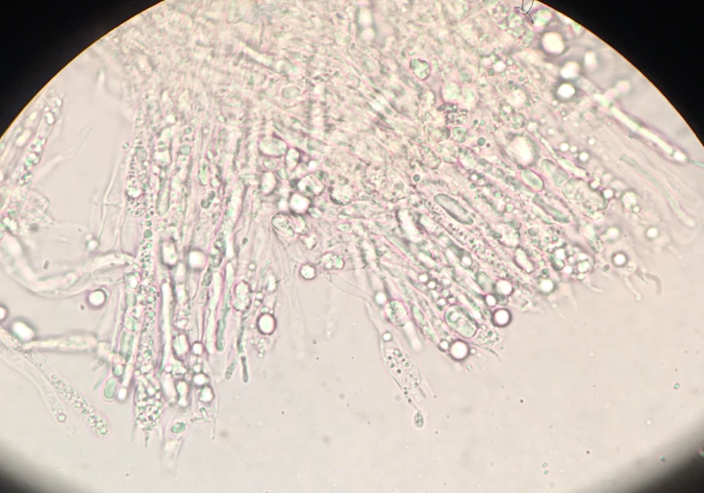 ich hab jetzt nochmals mikroskopiert und denke, dass du mit deiner Vermutung richtig liegst. Die Sporen sind amyloid und ich denke auch diese recht großen Gloeozystiden gefunden zu haben.