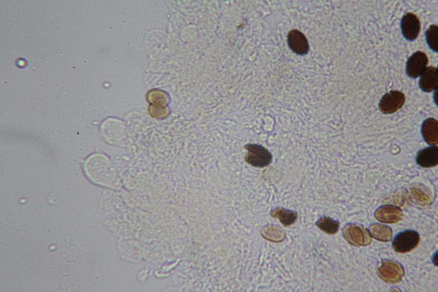 die Sporen habe ich mir nochmals angesehen, bevorzugt jene mit Apikulus und Keimporus. Sollte die Seitenansicht, die du meinst, sein.