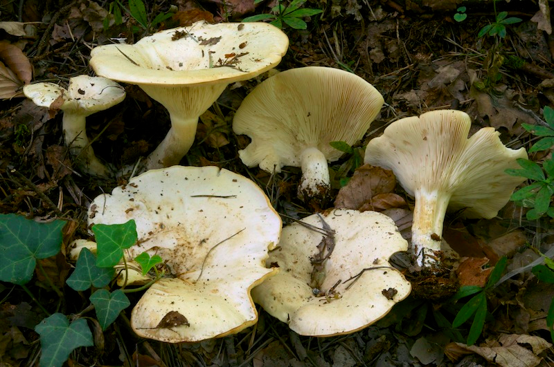 Leucopaxillus giganteus: An einer Stelle mit Dutzenden Fruchtkörpern vertreten.