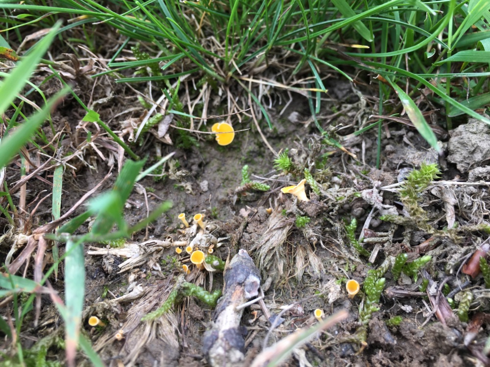 Der gelbe Becherling sieht interessant aus, wobei ich da jetzt ganz spontan eher nicht an eine Sowerbyella gedacht hätte – aber ich kann mich natürlich täuschen. Da lohnt es sich auf jeden Fall, das Mikroskop anzuwerfen.