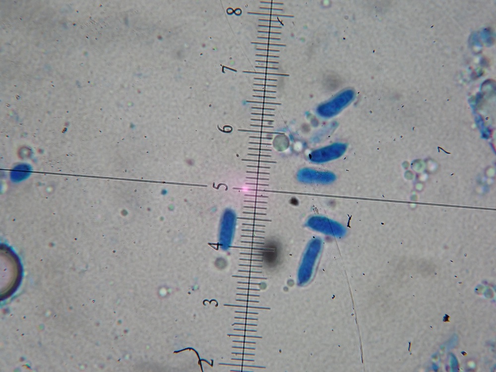 Sporen meist in einem Bereich von 6-8 x 2,5-3,5ym elliptisch, z.T. auch bohnenförmig, Amyloidität nicht eindeutig, deutlich cyanophil