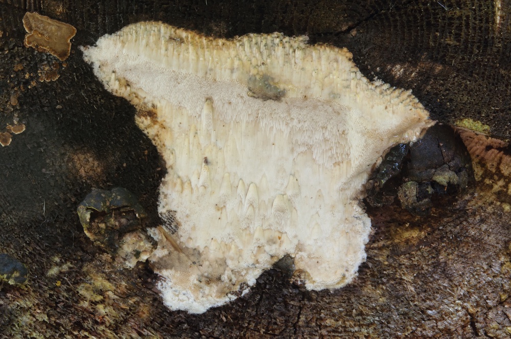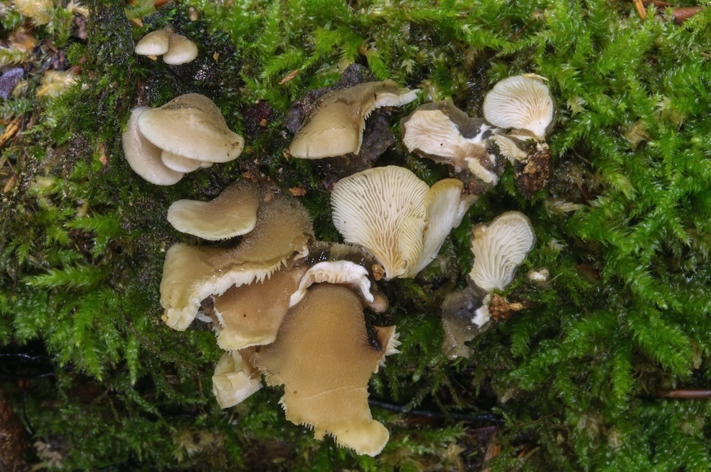 Hohenbuehelia atrocoerulea: Liegender Stamm von Acer pseudoplatanus.