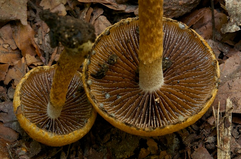 Ebenfalls ein sehr schmächtiger Vertreter seiner Gattung, ohne Cortina und mit Tropfen an der Stielspitze bzw. an den Lamellen.