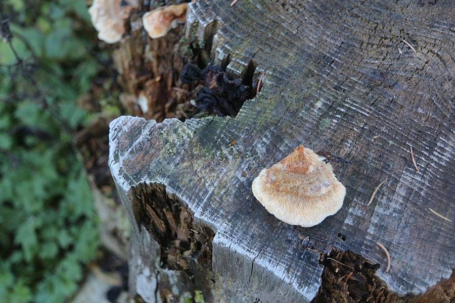 7 - 15) Trametopsis cervina, an der Bestimmung zweifle ich nicht. Die Aufnahmen erfolgten in einem größerem Abstand, dreimal war ich bei diesem Baumstumpf. Den größten FK habe ich eingesackt, einen kleineren durchgeschnitten,