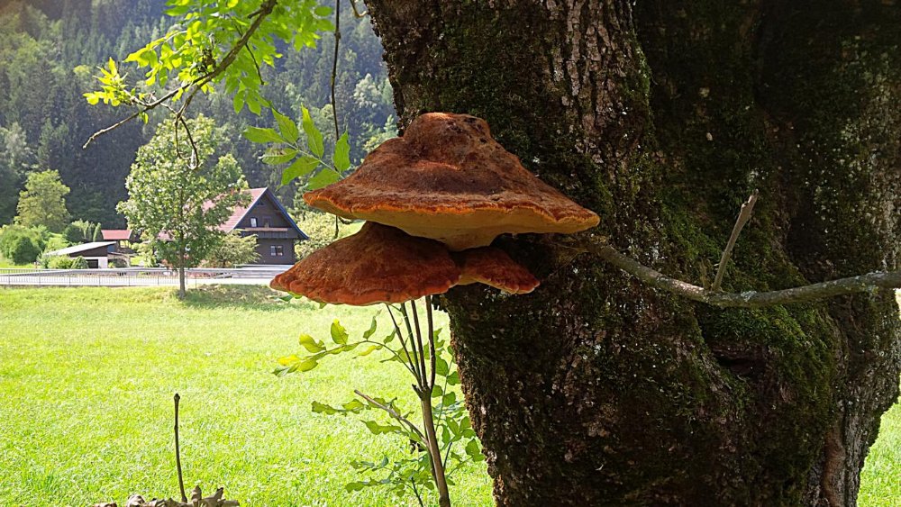 Befallen sind mehrere Bäume, die Fruchtkörper sind mal auf diesen, mal auf jenen anzutreffen,