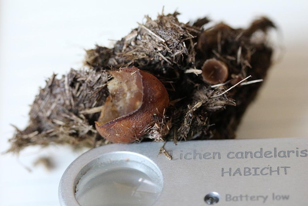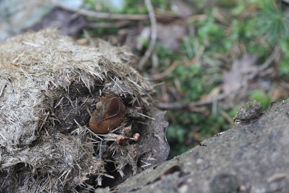 Fruchtkörper 2 x 1 x 1 cm, hell-dunkelbraun, feinkleiig.