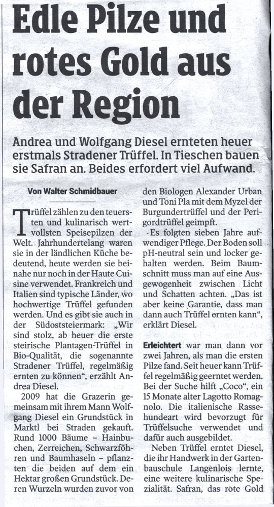 Habe in der Kleinen Zeitung (Steiermark – Kärnten) einen Artikel über Trüffelzucht gelesen und stelle ihn ins Forum.