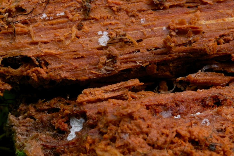 Ombrophila lilacina (auf der Unterseite eines Laubholzstückes)