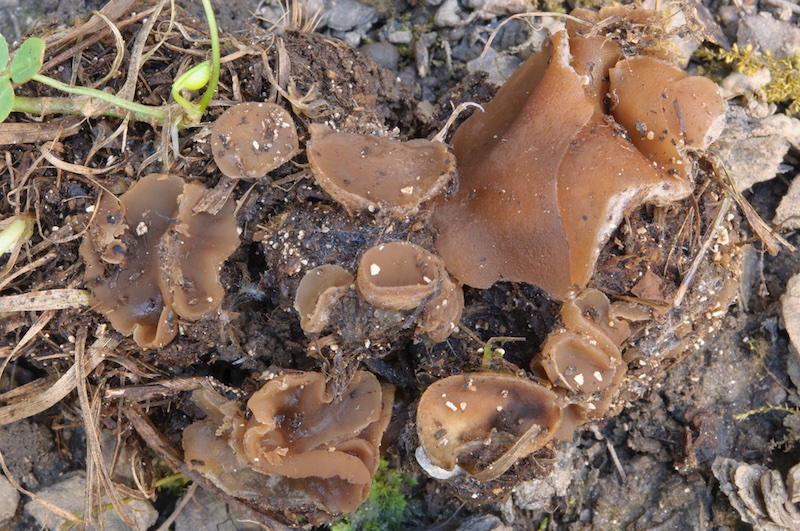 ein aktueller Fund auf bzw. unter Kuhmist (von gedüngter Wiese; leg. I. Wendelin) illustriert die Bestimmungsschwierigkeiten bei den coprophilen Peziza-Arten. Je nach verwendeter Literatur kommt man zu verschiedenen Ergebnissen... Um ein paar Beispiele zu nennen: