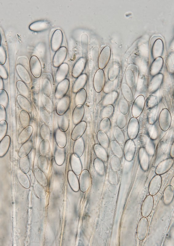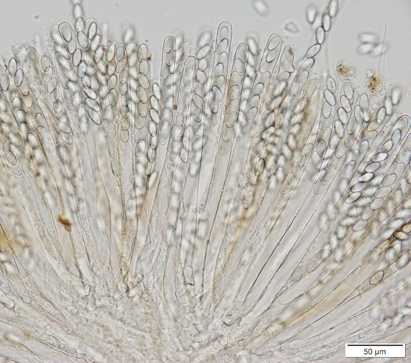 Hohmeyer (1986): Unterscheidet drei coprophile Arten mit feinem Ornament, nämlich P. moravecii, P. merdae und P. perdicina. Aufgrund der Sporenmaße (hier bis 17,5 µm Länge gemessen) und der vorhandenen mittleren textura intricata komme ich schön zu P. merdae.