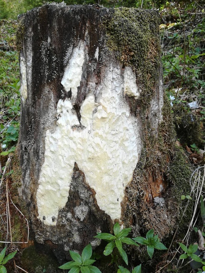 Mächtiger Nadelholzstamm mit Fomitopsis pinicola