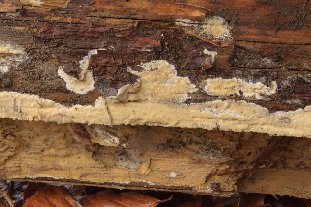 Antrodia serialis: Sehr häufig und sehr variabel, wie man hier sehen kann… Liegender Picea-Stamm. .