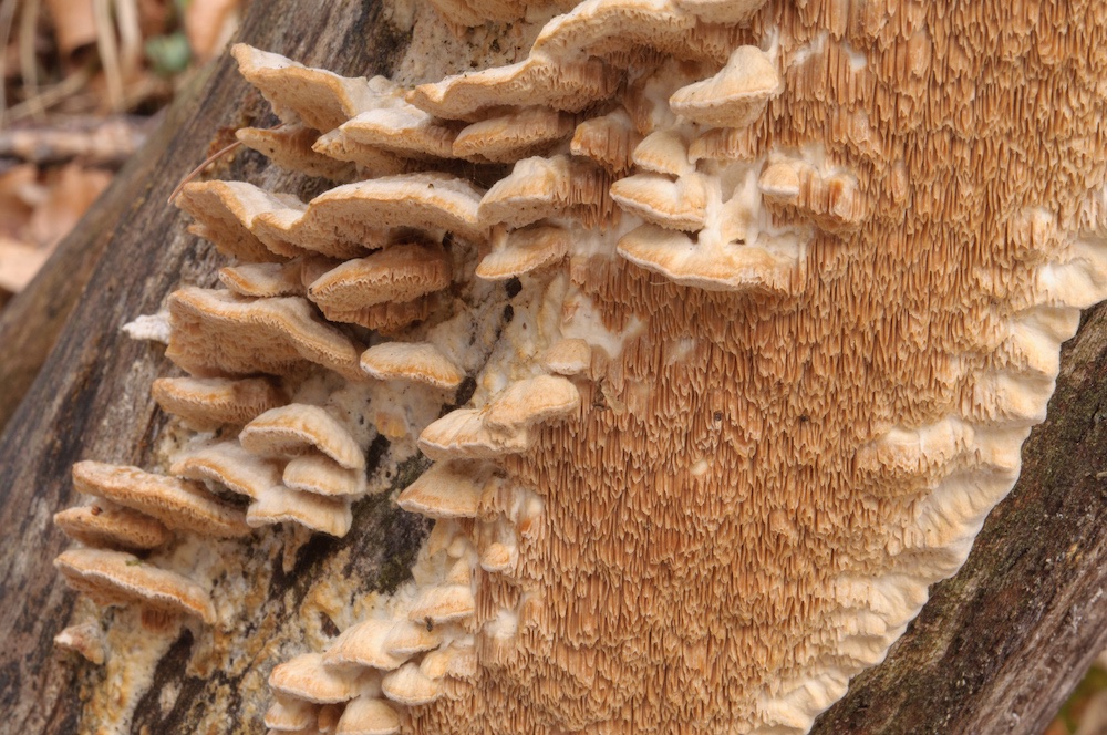Spongipellis pachyodon: Noch ein schöner Erstfund für mich, an der Stammbasis eines morschen Quercus-Stammes. .