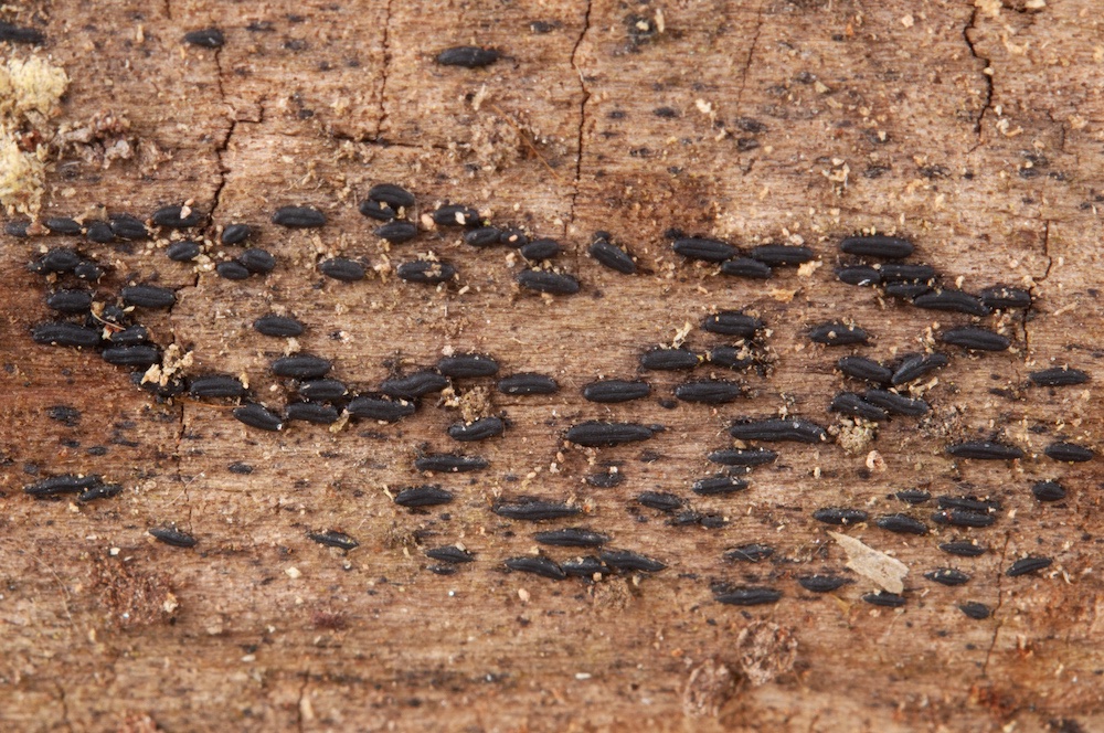 Hysterium angustatum: Einer der häufigsten Pilze überhaupt in den heimischen Wäldern und fast überall dort zu finden, wo es Laubbäume mit rauer Borke gibt. Funde auf entrindetem Holz, wie hier (Salix), sind da schon seltener. .