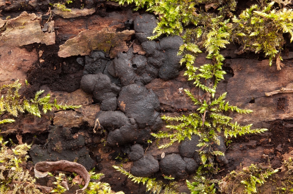 Camarops polysperma: Morsche Schwarzerlen-Stämme, so wie hier, sind eigentlich das bevorzugte Substrat, ich kannte sie bislang nur von einem Fagus-Stamm. .
