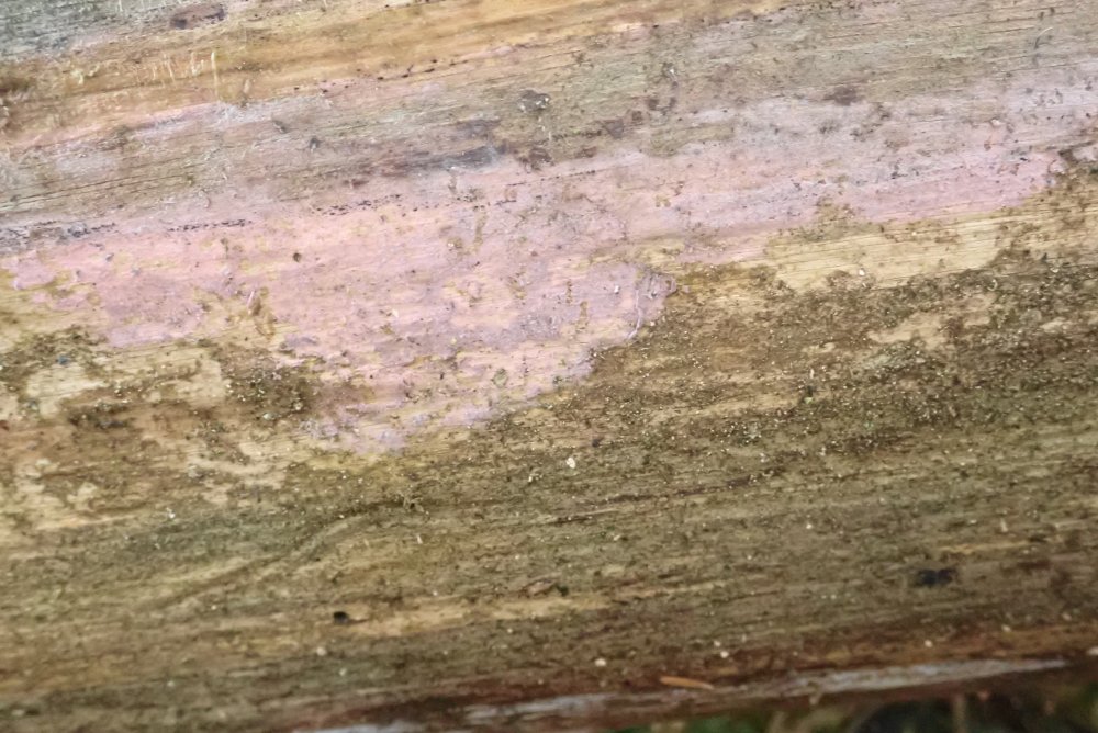 Bei dieser Runde bin ich u. a. auf Tulasnella violea an einem entrindeten, liegenden Pinus-Stamm gestoßen. Bisher glaubte ich immer, diese kommt nur an Laubholz und hatte sicherheitshalber mikroskopiert.