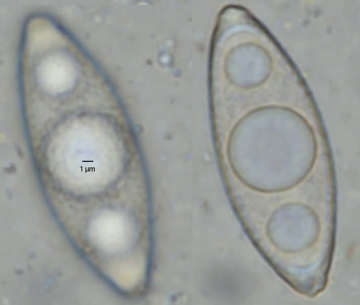 Die Maße ohne die Kalotten, also nur in Bezug auf die innere Sporenwand, betragen 18,2–22,7–26,9 x 10,1–11,0–11,7(–12,3) µm, Q = 1,5–2,06–2,5
