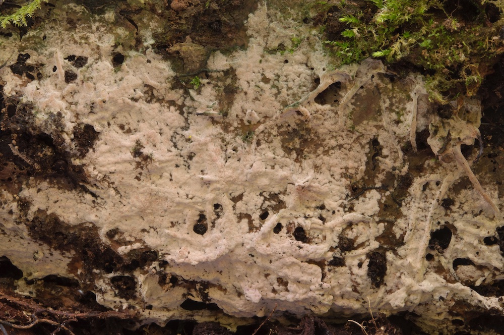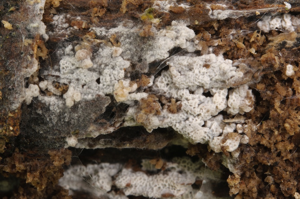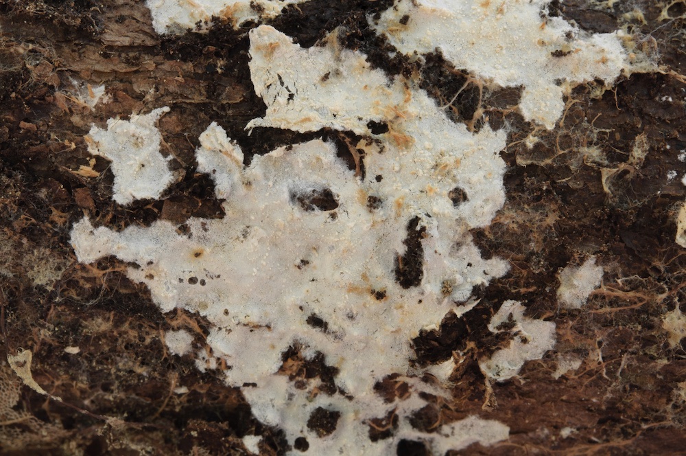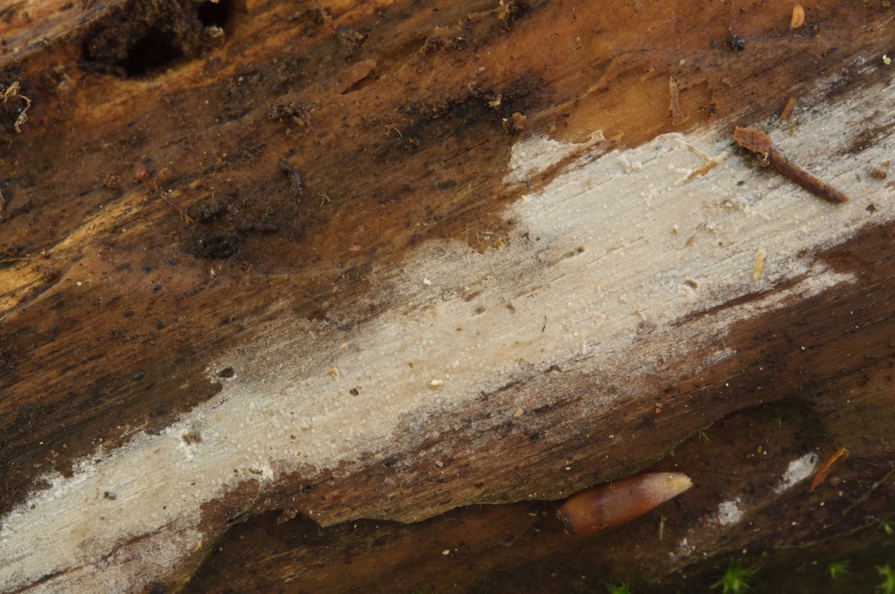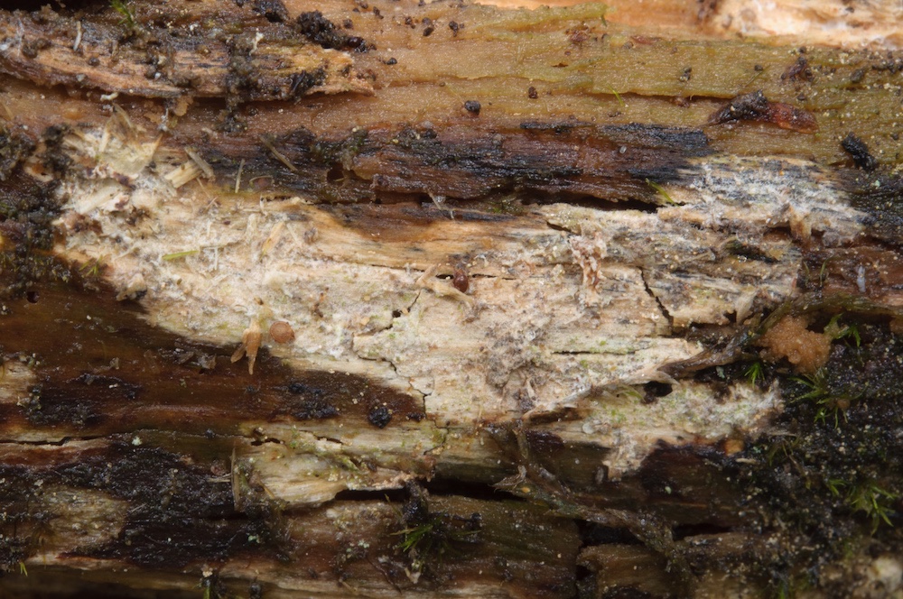 Repetobasidium erikssonii: Stark vermorschtes Laubholzstück.